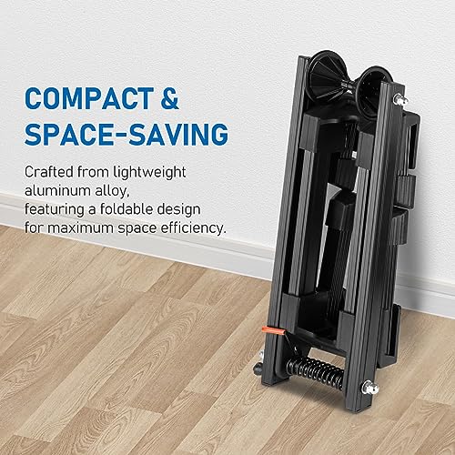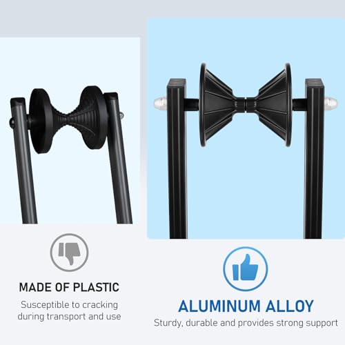 Material de Aleación de Aluminio – El soporte para bicicletas está hecho de aleación de aluminio ligero, ofreciendo una mayor portabilidad en comparación con el acero y una mayor estabilidad y durabilidad que los soportes de bicicletas de plástico. Estacionar su bicicleta es tan fácil como un ligero empujón, y se pliega fácilmente para un transporte conveniente.
