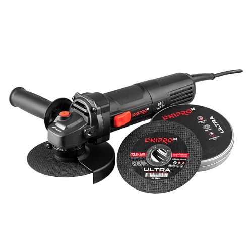 Dnipro-M GS-100S Amoladora Angular, 850 W, Disco 125 mm, 4,000-11,000 RPM, Con Mango Adicional, 10Pcs Disco de Limpieza, Protecciones Incluidas, Cable 3 m, Ideal para Corte y Desbaste