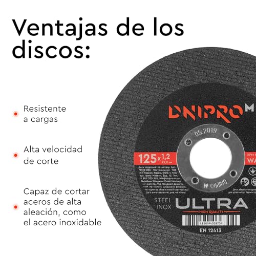 Accesorios incluidos: Viene con disco de limpieza Dnipro-M Ultra de 125 mm, mango auxiliar, juego de escobillas de grafito, llave para el cambio de disco y protector, listos para usar.