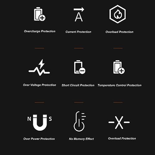 EXCELENTE SEGURIDAD: Nuestras baterías están hechas de baterías de alto rendimiento y ofrecen seis sistemas de protección, que incluyen protección contra sobredescarga, sobrecalentamiento, sobrecarga, sobrecorriente, sobretensión y cortocircuito. Puede usarlo de forma segura en su herramienta.