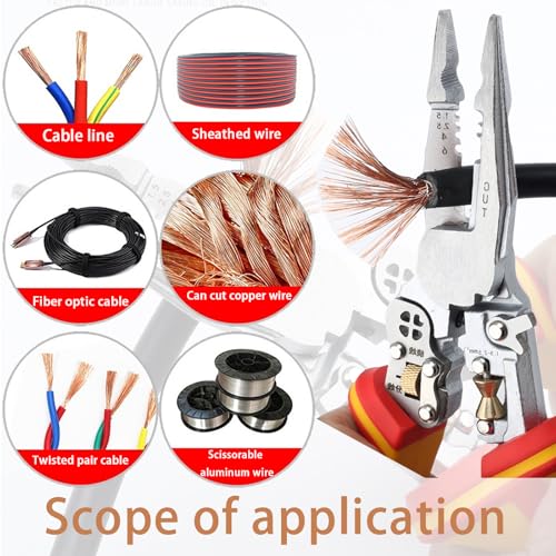【ConstruccióN Resistente】Hecho de acero vanadio de alta calidad, este 9 IN 1 pelacables ofrece una durabilidad excepcional y un rendimiento duradero. Las asas ergonómicas y antideslizantes garantizan un agarre seguro, incluso en aplicaciones exigentes