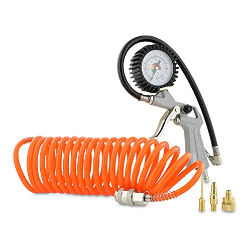 ABAC Kit para compresor de Herramientas de Inflador G-811TI (Inflador de neumáticos con manómetro de 60 mm + manguera espiral + 3 puntas de inflado)