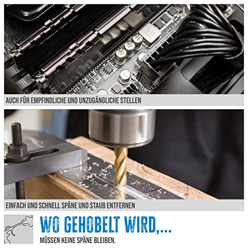 Fácil de usar: gracias a su diseño ergonómico, la pistola de soplado se adapta cómodamente a la mano y permite un fácil manejo. La boquilla de conexión incorporada facilita la conexión rápida a su sistema de aire comprimido.