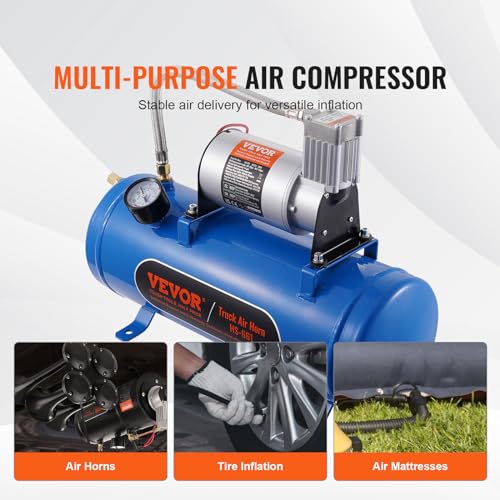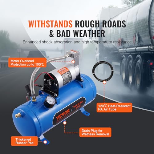 VEVOR Compresor de Aire para Kit de Bocina 90-120 psi Bomba de Aire con Tanque de 6 L para Inflar Neumáticos Colchones de Aire Compatible con Todos los Vehículos de 12 V Trenes Barcos Coches Taller