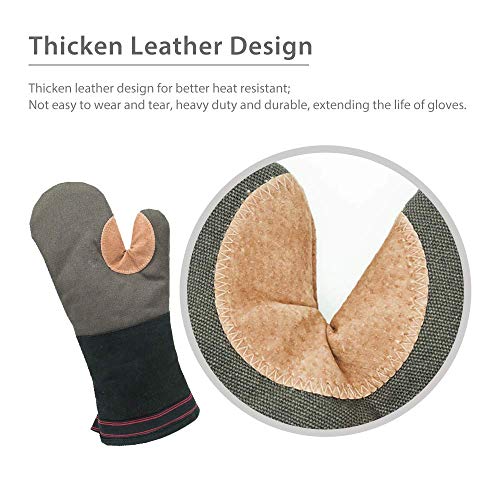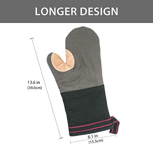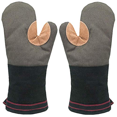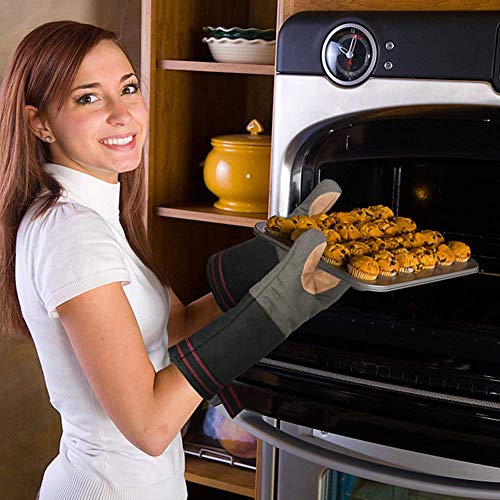 AYADA Guantes Horno Gruesos Largos Grandes, Manoplas Horno Cocina Profesional Antideslizante Lona Fibra de poliéster Cuero Oven Gloves (Gris)